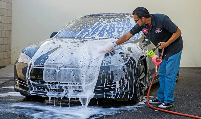 Pre-Rinse: Rinse the car thoroughly to remove loose dirt and debris.